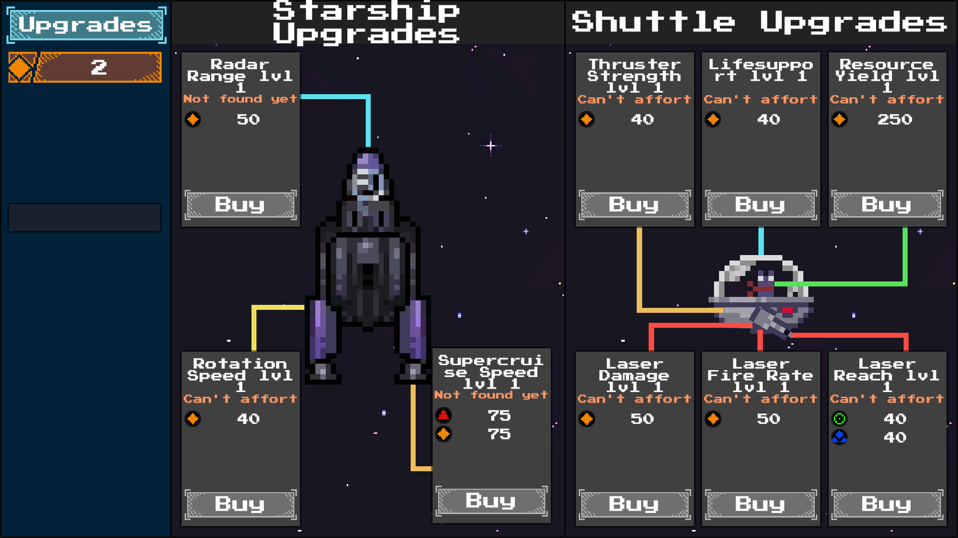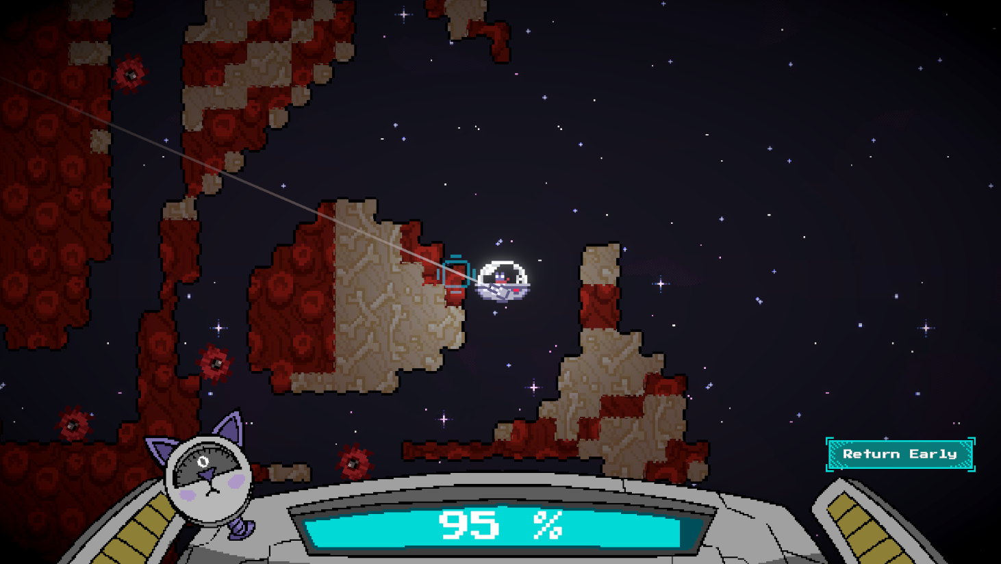 Navigate the star map with WASD/Joystick, and approach an asteroid. Once an asteroid has been entered, fly down to the surface and begin mining by holding down space/RT! Collect resources to spend on upgrades while on the space map, explore the asteroid for progression, and collect all 3 legendary items to escape home.